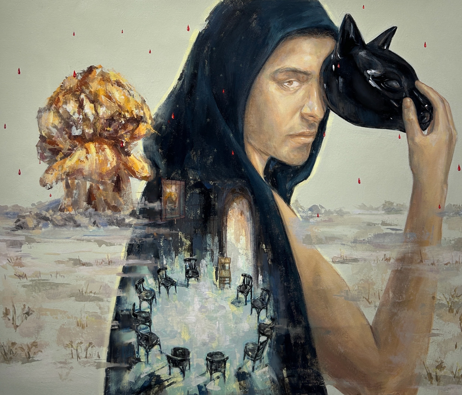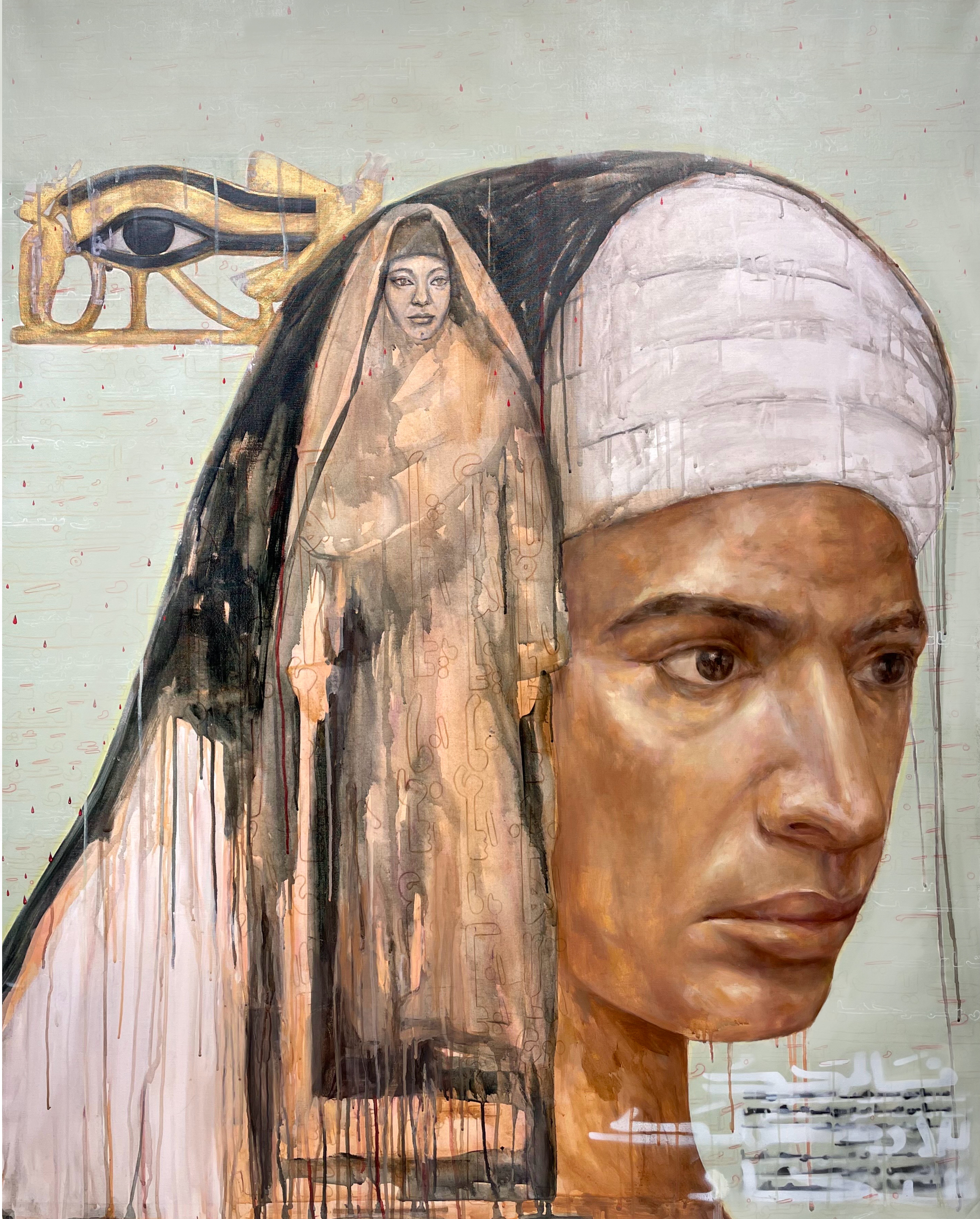 The painting captures a moment from The Mummy (1969), using light and shadow to evoke the tension and mystery of the film, the piece reflects the struggle between life and death. The work explores the emotional depth and supernatural themes that define the cinematic masterpiece.