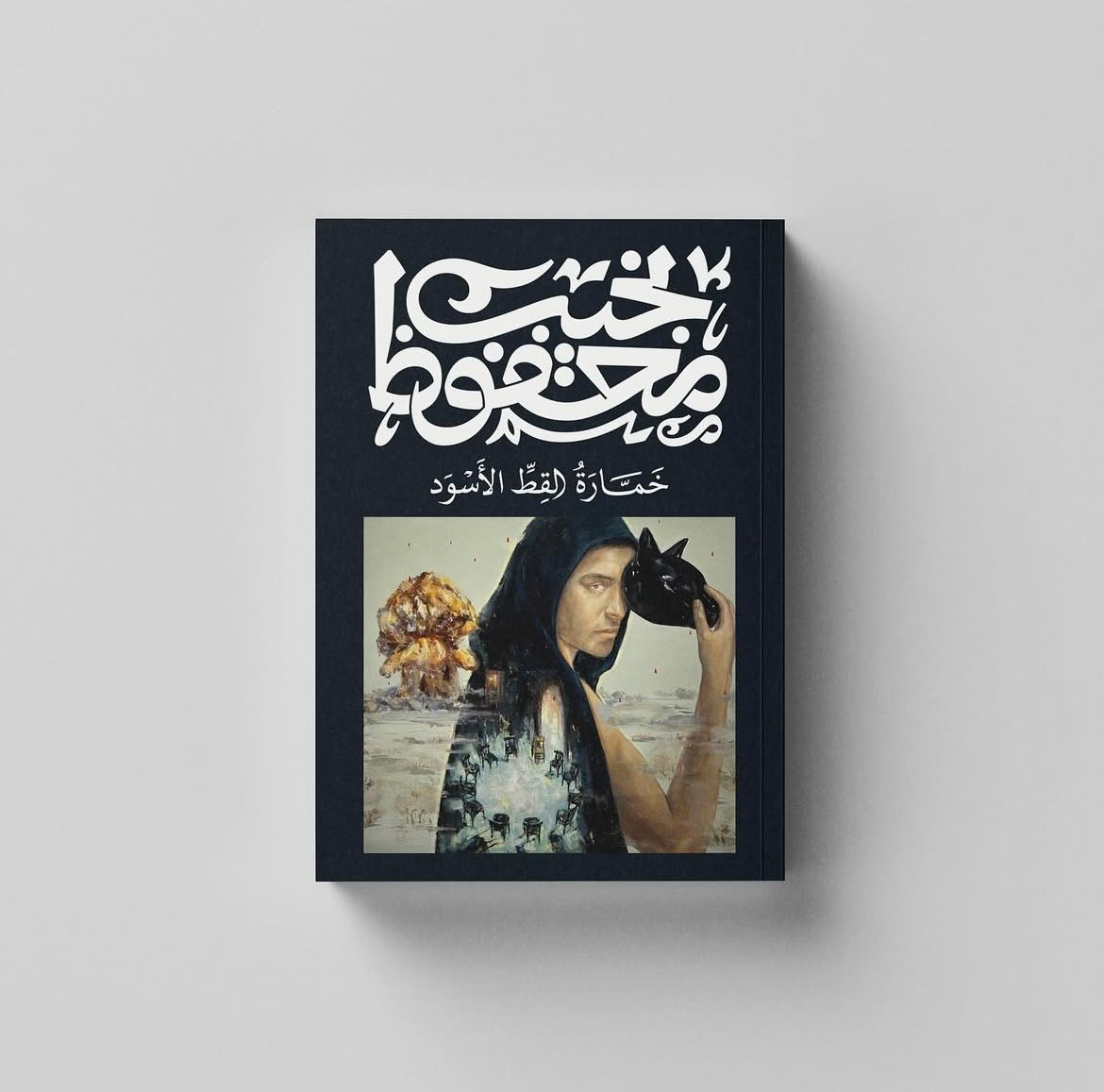 Illustration for the book cover “The Black Cat’s Pup” by Naguib Mahfouz, reflecting the novel’s mysterious atmosphere and layered symbolism. Through the use of dark tones and symbolic elements such as the black cat, the design evokes psychological tension and existential themes, highlighting the ongoing conflict between light and darkness. The illustration invites the reader into the book’s enigmatic world