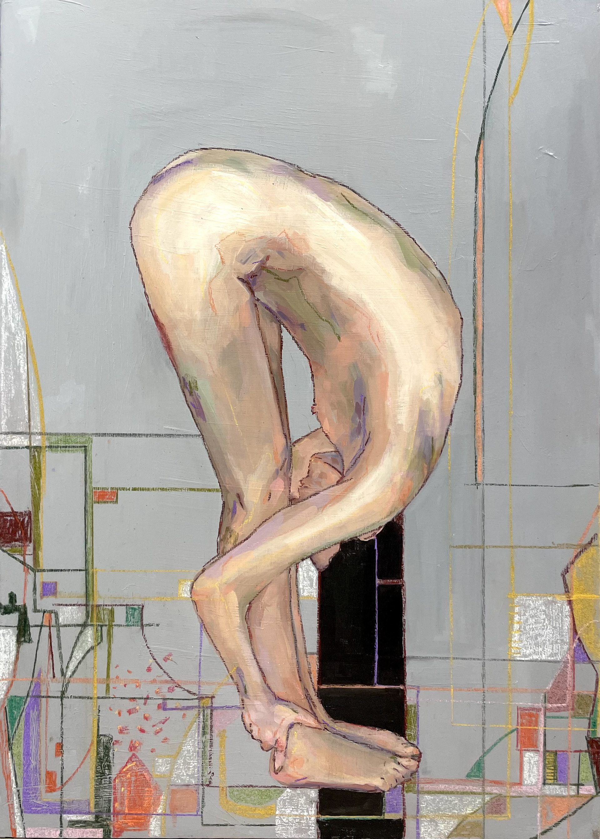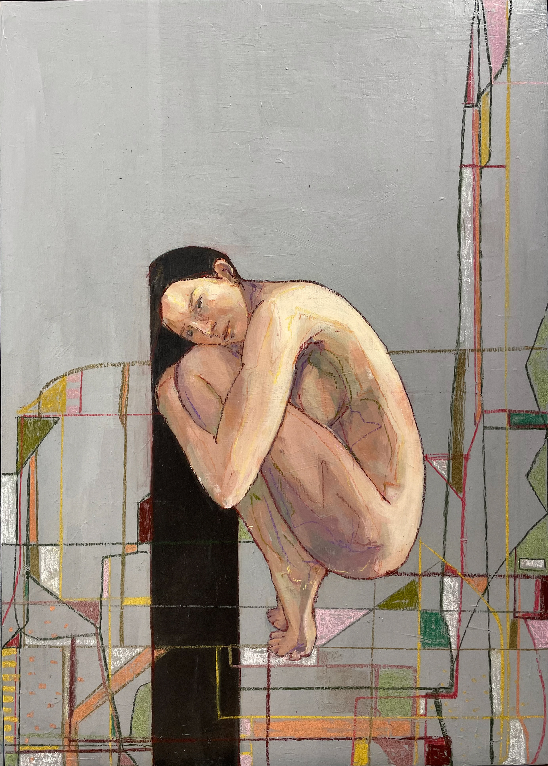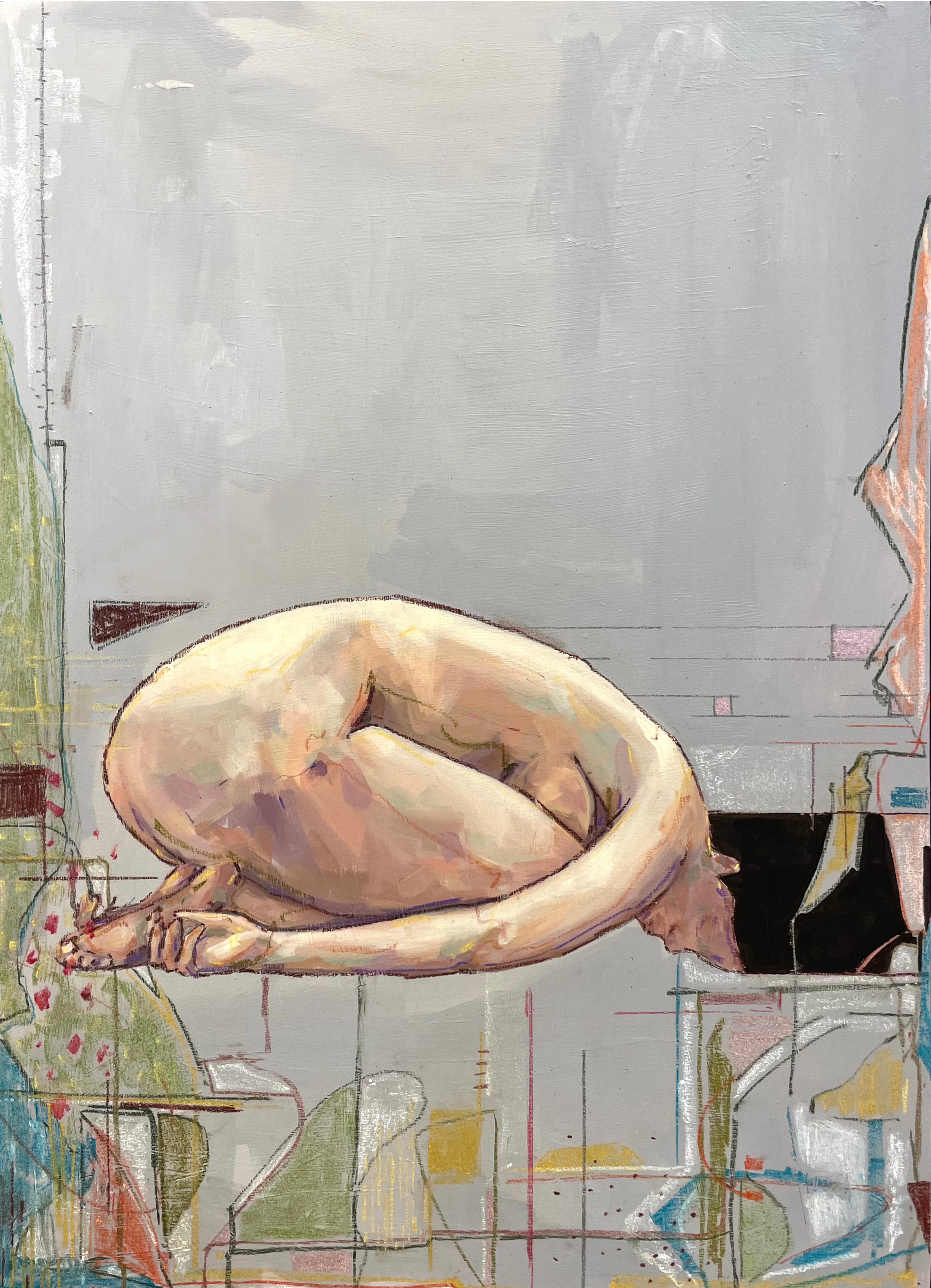 Figures collapse, overlap, and lose clear boundaries, registering moments of withdrawal, suspension, and quiet resignation.