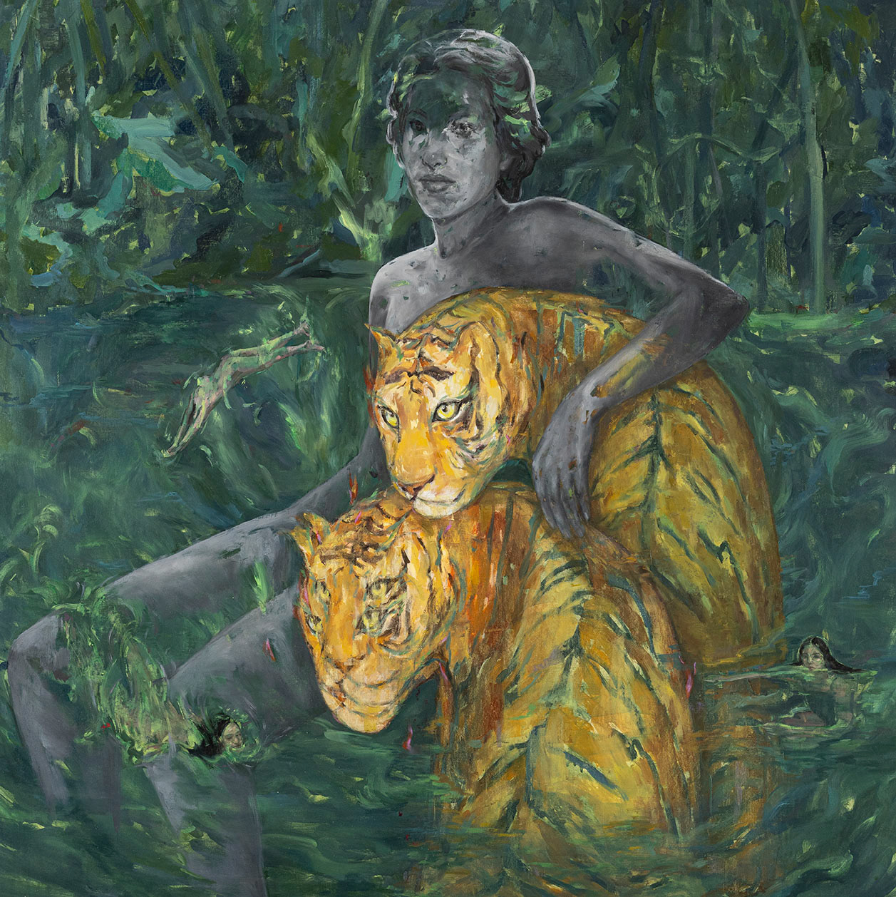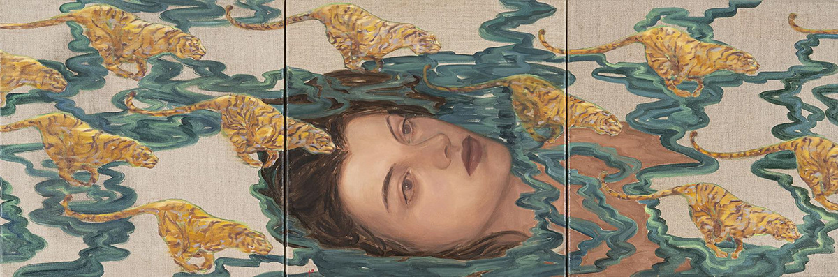Water acts as a central condition, dissolving boundaries and reshaping the image from within, while the tiger emerges as a quiet, instinctive force that remains steady beneath the shifting surface. Together, these elements form a visual field where memory is not preserved but continually re-formed through sensation and transformation.